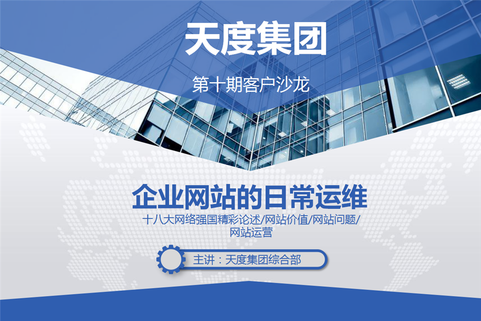 企業(yè)網(wǎng)站建設(shè)是企業(yè)文化的組成部分,對企業(yè)形象的建立和企業(yè)知名度的提高起著至關(guān)重要的作用,是企業(yè)實現(xiàn)”互聯(lián)網(wǎng)+“產(chǎn)業(yè)轉(zhuǎn)型的重要手段。建一個網(wǎng)站,對于大多數(shù)人并不陌生。尤其是已經(jīng)擁有自己網(wǎng)站的企業(yè)和機(jī)構(gòu)。但是提到網(wǎng)站運(yùn)營可能特別多人不理解,對網(wǎng)站運(yùn)營的重要性也不明確,通常被忽視。故此天度集團(tuán)專門針對“企業(yè)站的日常運(yùn)維”展開了第十期客戶沙龍。