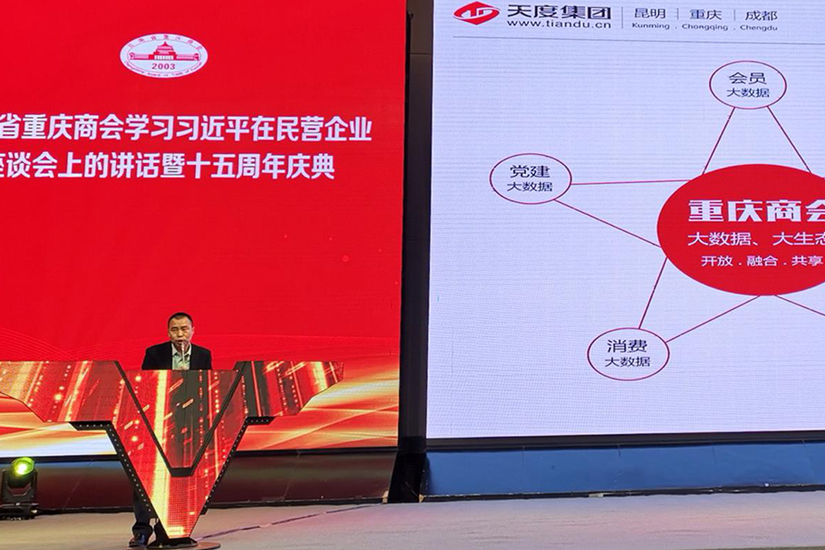 2018年12月21日下午,云南省重慶商會(huì)在云安會(huì)都國(guó)際會(huì)議中心隆重舉行主題為《云南省重慶商會(huì)學(xué)習(xí)習(xí)近平總書記在民營(yíng)企業(yè)座談會(huì)上的講話暨十五周年》活動(dòng),云南省人民政府副省長(zhǎng)王顯剛,云南省政協(xié)副主席、省工商聯(lián)主席喻頂成等領(lǐng)導(dǎo)出席了會(huì)議,天度集團(tuán)董事長(zhǎng)鄭桂文現(xiàn)場(chǎng)對(duì)“商會(huì)大數(shù)據(jù)”建設(shè)情況進(jìn)行介紹并出席了大數(shù)據(jù)平臺(tái)啟動(dòng)儀式。