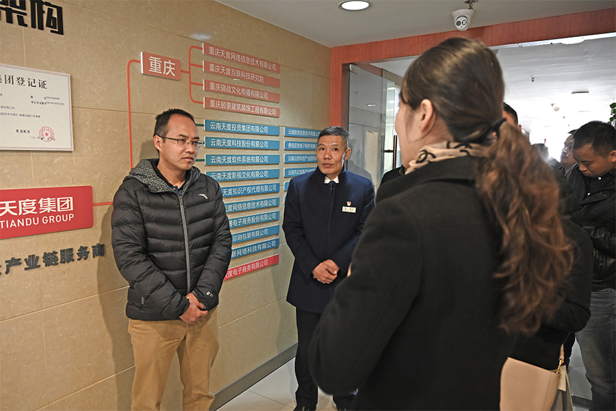 12月17日上午,西山區(qū)委副書記陳凈等領導一行來到天度集團調研,區(qū)委組織部、區(qū)委辦、區(qū)科學技術和工業(yè)信息化局、永昌街道黨工委、云紡科技園等領導陪同調研。
