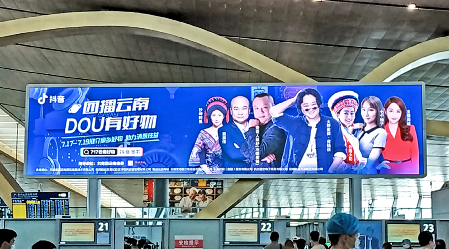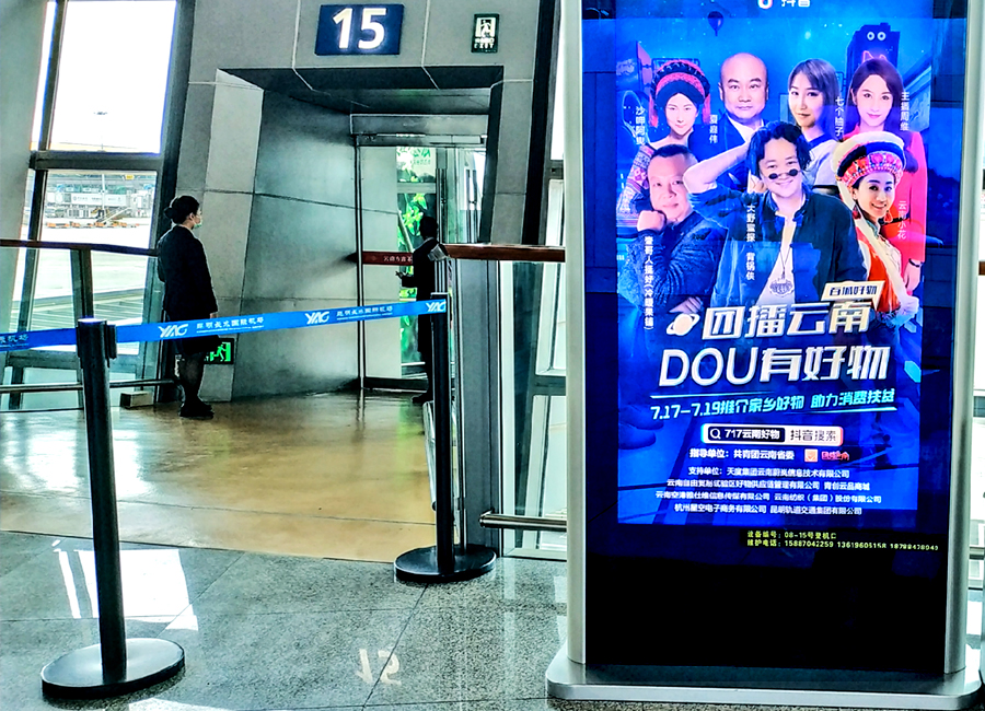 在活動(dòng)期間,昆明長(zhǎng)水國(guó)際機(jī)場(chǎng)國(guó)內(nèi)國(guó)際出發(fā)到達(dá)機(jī)場(chǎng)入口戶(hù)外廣告、登機(jī)口、安檢口等共計(jì)86塊電子大屏廣告、昆明地鐵廣告、云紡科技園電子大屏和主要路口進(jìn)行了同步活動(dòng)預(yù)熱。