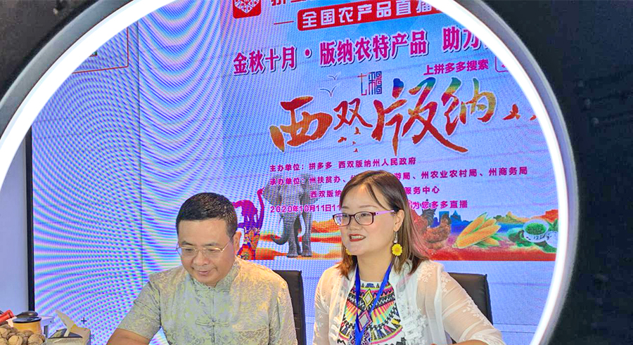 2020年10月11日,由拼多多、西雙版納傣族自治州人民政府、州扶貧辦、州文化和旅游局、州農(nóng)村農(nóng)業(yè)局、州商務(wù)局、州電子商務(wù)公共服務(wù)中心聯(lián)合舉辦的助農(nóng)直播活動在州電子商務(wù)公共服務(wù)中心舉行。