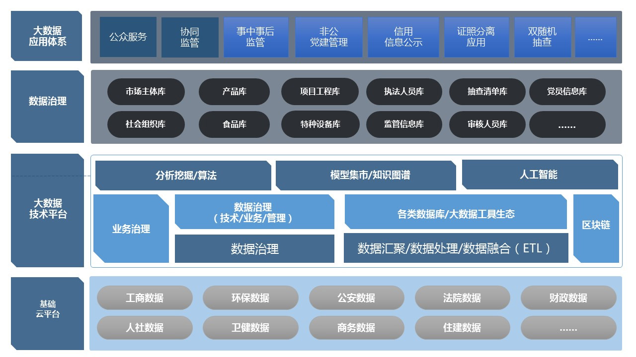 依托互聯(lián)網(wǎng),使用“互聯(lián)網(wǎng)+監(jiān)管+服務(wù)”新模式,解決信息孤島、信息不對(duì)稱(chēng)、效率低下等問(wèn)題,實(shí)現(xiàn)信息推送、信息歸集、信息共享、聯(lián)合監(jiān)管、聯(lián)合懲戒、監(jiān)管共管共治,建立事前告知制度,將監(jiān)管工作重心從事前審批轉(zhuǎn)向事中事后監(jiān)管,建立市場(chǎng)主體信用檔案,深入開(kāi)展社會(huì)應(yīng)用,用于政府采購(gòu)、招標(biāo)投標(biāo)、行政審批、政策扶持、資金扶持、資質(zhì)資格認(rèn)定、評(píng)優(yōu)表彰、融資信貸等活動(dòng)中。實(shí)現(xiàn)地區(qū)監(jiān)管手段和方式轉(zhuǎn)型升級(jí),形成“寬進(jìn)嚴(yán)管”監(jiān)管體系,實(shí)施信用監(jiān)管,構(gòu)建“一處違法、處處受限”信用約束機(jī)制,營(yíng)造公平競(jìng)爭(zhēng)市場(chǎng)環(huán)境,落實(shí)中央“放管服”(放得開(kāi)、管得住、服務(wù)好)改革,有效促進(jìn)大眾創(chuàng)業(yè)萬(wàn)眾創(chuàng)新,激發(fā)市場(chǎng)活力;結(jié)合非公黨員大量分散在企業(yè),平臺(tái)已有企業(yè)資源等特點(diǎn),搭載非公黨建管理服務(wù)平臺(tái),實(shí)現(xiàn)非公黨組織、黨員管理及服務(wù),黨建工作常態(tài)化、數(shù)字化、規(guī)范化,提升非公企業(yè)黨組織覆蓋率。