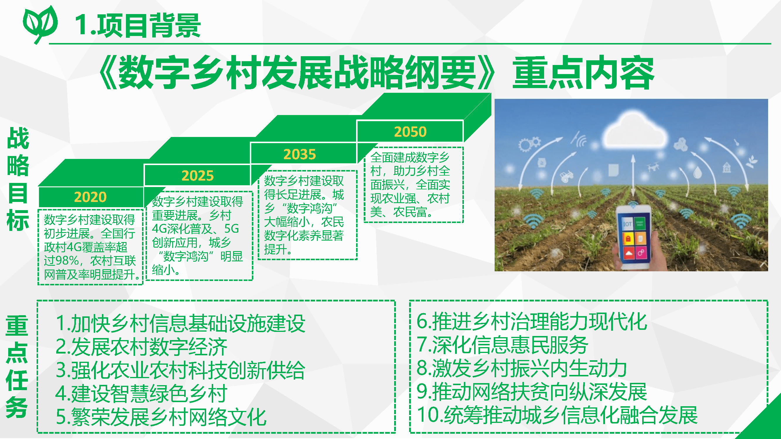 中央網(wǎng)信辦等七部門聯(lián)合印發(fā)《關(guān)于開展國家數(shù)字鄉(xiāng)村試點(diǎn)工作的通知》提出完善“三農(nóng)”信息服務(wù)體系,“三農(nóng)”問題目的是要解決農(nóng)民增收、農(nóng)業(yè)發(fā)展、農(nóng)村穩(wěn)定,三農(nóng)”問題關(guān)系到國民素質(zhì)、經(jīng)濟(jì)發(fā)展,也關(guān)系到社會(huì)穩(wěn)定、國家富強(qiáng)、民族復(fù)興。聚焦農(nóng)民生產(chǎn)生活實(shí)際需求,將“三農(nóng)”信息服務(wù)體系建設(shè)落到實(shí)處,為村民提供精細(xì)化的村務(wù)管理,人性化的惠民服務(wù),專業(yè)化的農(nóng)事生產(chǎn),生態(tài)化的村容村貌,新時(shí)代的鄉(xiāng)風(fēng)文明。