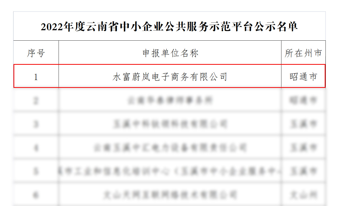 水富蔚嵐電子商務(wù)有限公司獲“省級(jí)中小企業(yè)公共服務(wù)示范平臺(tái)”認(rèn)定