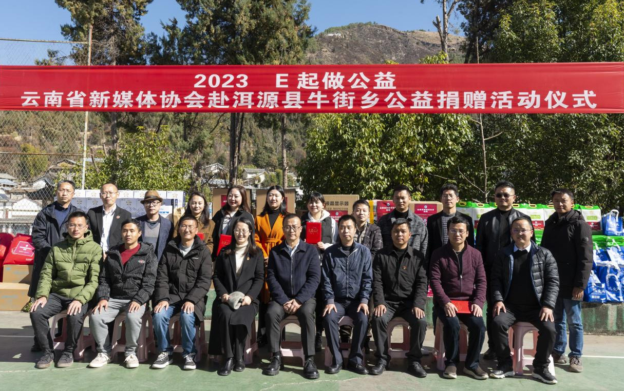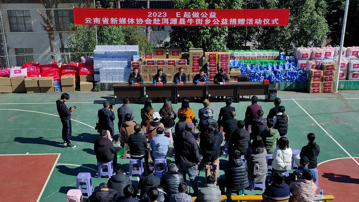 1月13日,云南省“2023 E起做公益”活動(dòng)在大理州洱源縣啟動(dòng),當(dāng)天,云南省新媒體協(xié)會(huì)組織了9家互聯(lián)網(wǎng)企業(yè)前往洱源縣牛街鄉(xiāng)開展首場(chǎng)公益活動(dòng),向當(dāng)?shù)厝罕娋栀?zèng)了急需的電腦及生活物資1112件,解決了群眾的燃眉之急。群眾說,“這是我們收到的最好的新年禮物!”