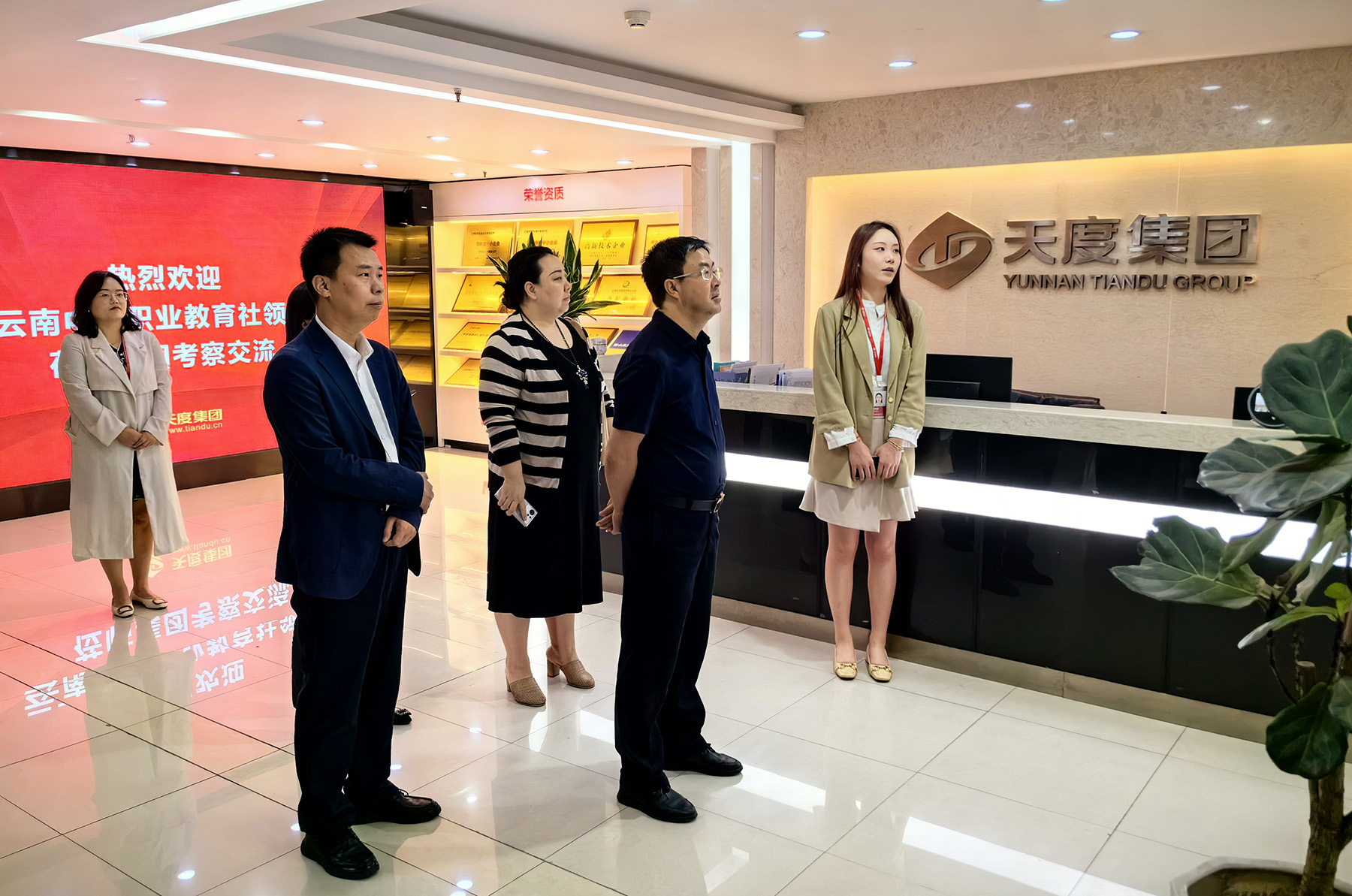 5月15日,云南中華職業(yè)教育社專職副主任馬俊等領(lǐng)導(dǎo)一行到天度集團調(diào)研,并進行職業(yè)教育產(chǎn)教融合等領(lǐng)域的座談交流。